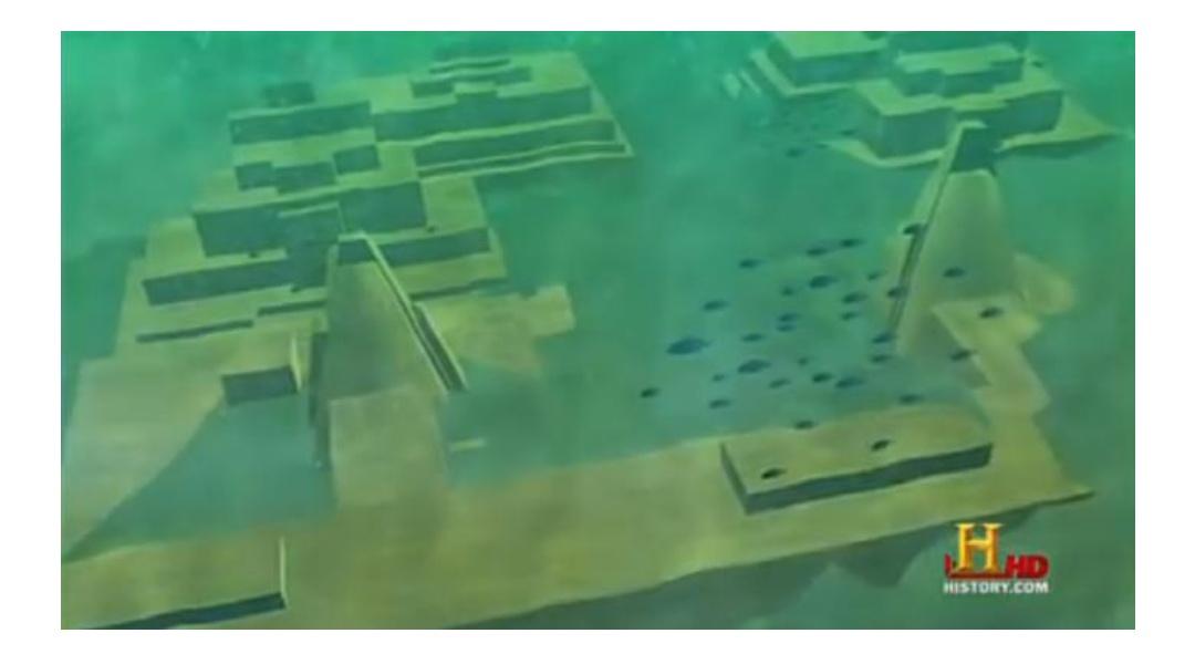 1958년에 몇몇 미국의 과학자들이 바하마제도 주위의 바다 속을 탐사하던 중 이상한 건축물들을 발견했다. 이 건축물들은 특이한 기하학적 양식이었는데 수 마일이나 곧바로 뻗어 있었다. 10년 후에 길이가 120m에서 150m에 이르는 거대한 돌 벽들을 그 근처에서 발견하였다.