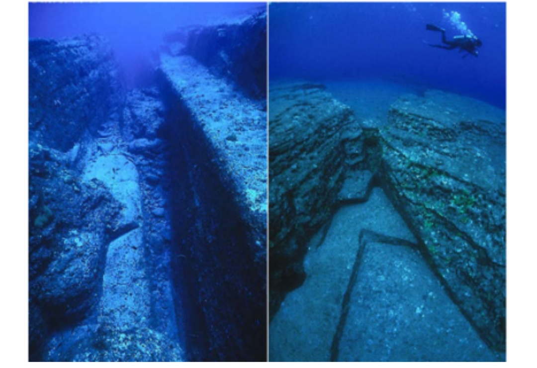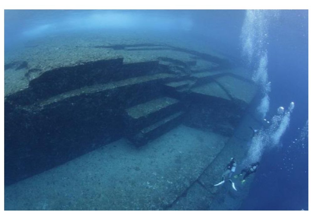 약 50년 전에 몇몇 잠수부들이 류큐 군도에 있는 요나구니 섬 남단의 바다 속에서 인간이 만든 건축물 유적을 발견했다. 그곳에는 산호로 뒤덮인 사각형 모양 건축물이 있었는데 그것은 바로 거대한 연단이었다. 모퉁이, 통로, 계단, 아치형 부속 건축물을 갖춘 연단이었다. 그 유물은 고대도시의 제단과 비슷하게 생겼다. 길이는 동서로 약 200m, 남북으로 약 140m에 이르렀다. 높이는 가장 높은 곳이 약 26m 정도였다.
